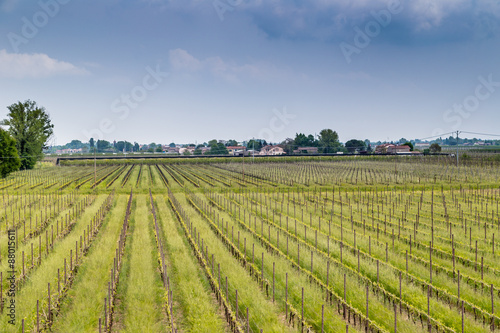 Fototapeta premium orchards organized into rows on flat plain