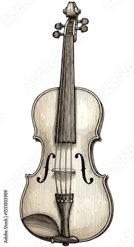Naklejka premium Orchestral Violin Illustration Musical Instrument Fiddle Strings Bow Art