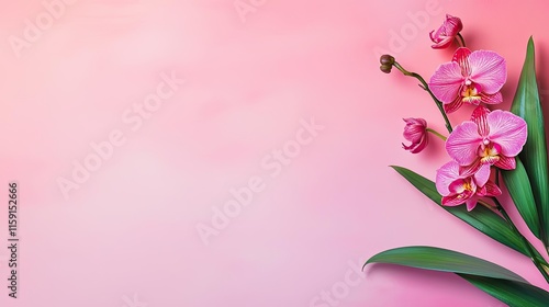 Naklejka premium Orchid floral abstract background idea. A beautiful pink orchid flower on a soft pink background exuding elegance and charm.