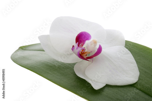 © bluebat, Naklejka premium Orchid flower and leaf on a white background