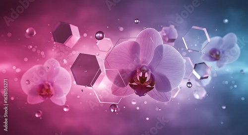 © Intan, Fototapeta premium Orchid Flower with Hexagon and Sphere Decoration