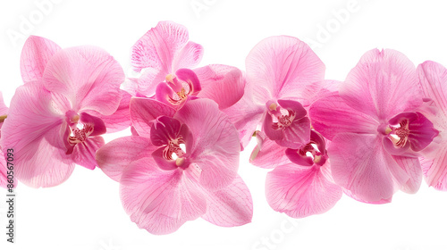 © Generative AI, Fototapeta premium Orchid flowers creative layout isolated on white background Pink flower composition Holiday concept Floral design element Top view flat lay : Generative AI