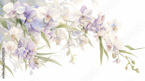 © Anciens, Obraz premium Orchid watercolor hand-painted decorative elements