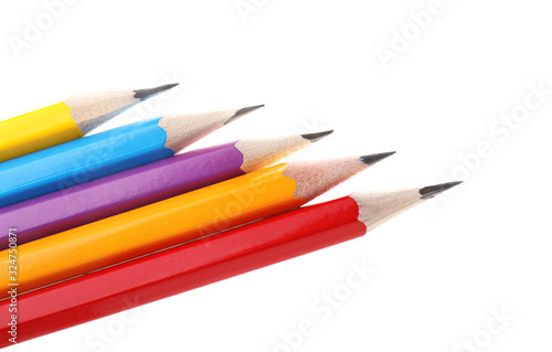 Naklejka premium Ordinary pencils on white background