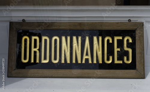 Obraz premium Ordonnances. Panneau de verre, lettres dorées sur fond noir