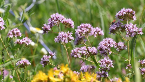 © Lukeriya, Fototapeta premium Oregano blooming in summer in a field.