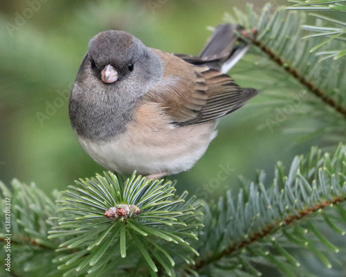 Fototapeta premium Oregon Junco perched on an evergreen branch