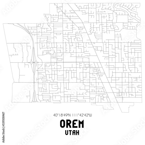 Fototapeta premium Orem Utah. US street map with black and white lines.