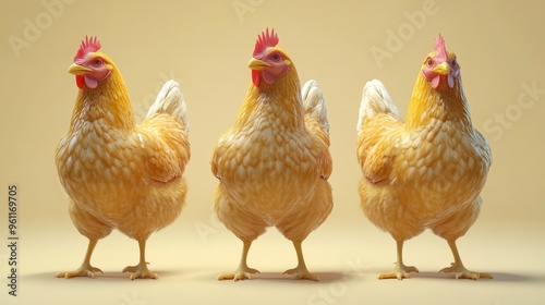 Fototapeta premium Organic chicken, farm-raised and free-range, 3D illustration