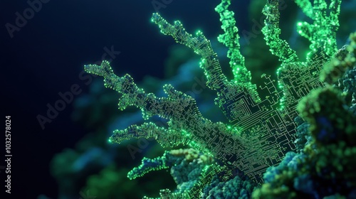 Fototapeta premium Organic Cybernetic Coral Forms Glowing in Dark