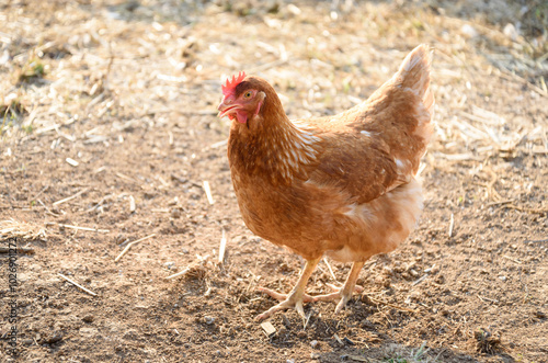 © Latthaphon, Fototapeta premium Organic Free Range Laying Hen Searching for Food in Thailand
