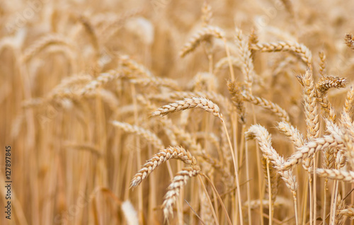 © fotolesnik, Fototapeta premium organic golden ripe ears of wheat in field