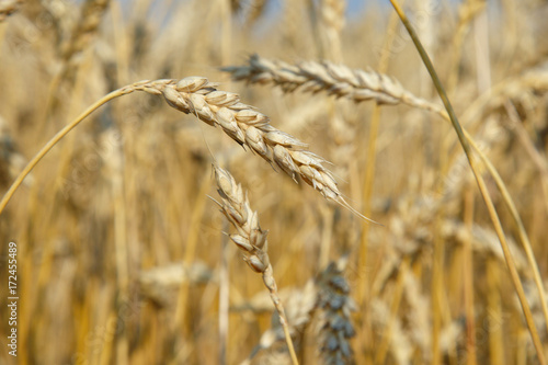 © Ivan Karpov, Fototapeta premium organic golden ripe ears of wheat in field