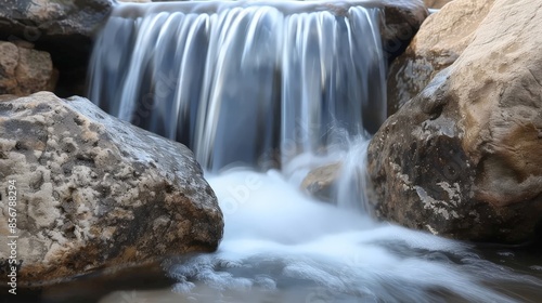 Fototapeta premium Organic motion capture of water cascading over rocks in a natural setting...