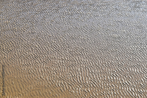 Obraz premium Organic natural patterns of wet sand on the beach at low tide