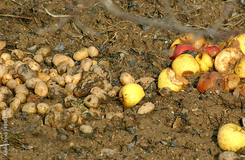 Obraz premium Organic pollution , rotten apples and potatoes