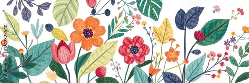 © Sandra, Fototapeta premium Organic Tapestry: Botanical Elements in Abstract Harmony