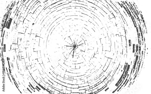 Obraz premium Organic Tree Trunk Cross Section Grunge Texture with Wood Rings, Cracks and...