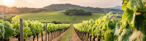 Fototapeta premium Organic vineyard using natural pest control, promoting biodiversity in...