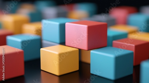 © JCreative, Obraz premium Organization chart infographics concept. Colorful Interconnected Modular Geometric Blocks Abstract Composition
