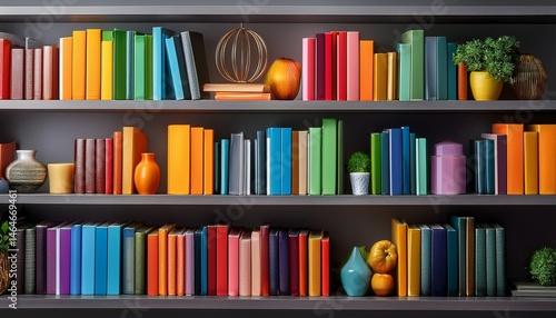 © Cynthia, Fototapeta premium organized bookshelf with colorful books