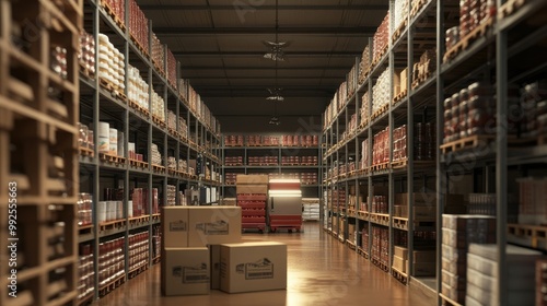 Obraz premium Organized Warehouse Interior with Shelves and Boxes