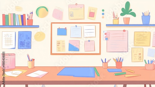 Fototapeta premium Organized Workspace: A Colorful Illustration of a Creative and Productive...