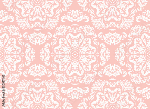 © Fine Art Studio, Fototapeta premium Orient vector classic pink and white pattern. Seamless abstract background with vintage elements. Orient pattern. Ornament for wallpapers and packaging