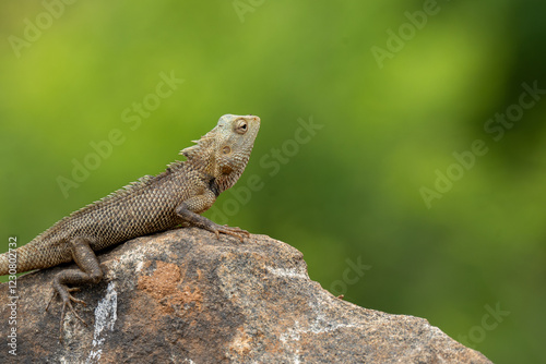 © Thisara, Obraz premium Oriental garden lizard (Calotes versicolor) sitting on a stone