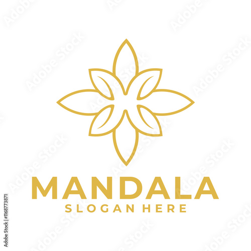 © PujiRahayu, Obraz premium Oriental geometric flower line art logo design vector template. Flower line art logo vector
