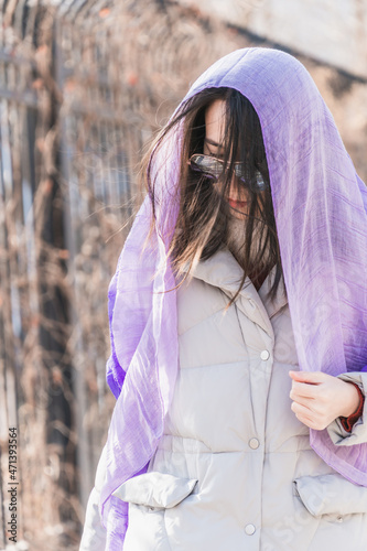 Obraz premium Oriental women on outdoor vacation in late autumn