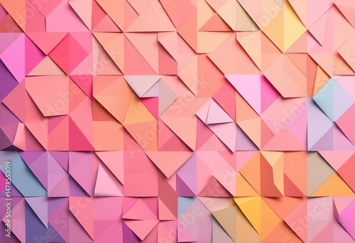 © Chalermrach, Obraz premium Origami-inspired geometric background with abstract mosaic, gradient-filled rectangles, backdrop, pattern