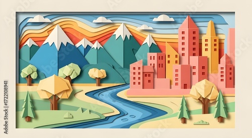 © adem, Fototapeta premium Origami Paper 2D Illustration with Creative Folded Design