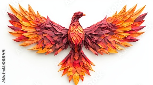 Obraz premium Origami phoenix rising papercut animal art installation bright gallery dynamic folded craft creative display