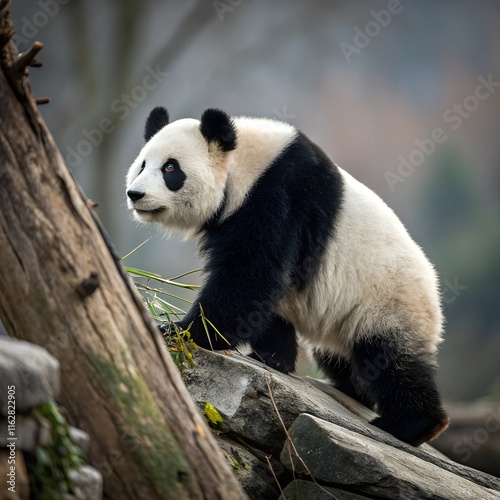 Obraz premium Original and dangerous image of Panda, panda eating bamboo