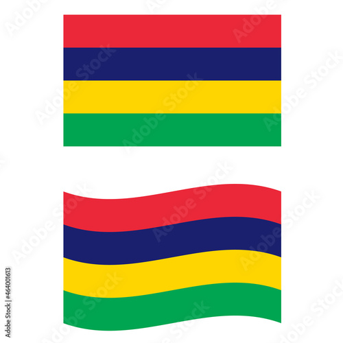 © theerakit, Obraz premium original and simple Mauritius flag on white background. Flag of Mauritius. waving Mauritius Flag. flat style.
