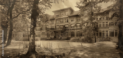 Fototapeta premium Original location, old factory, our original establishment, type of old photo.