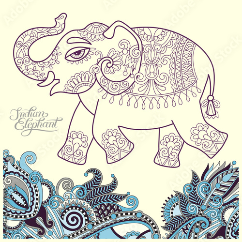 © Kara-Kotsya, Fototapeta premium original stylized ethnic indian elephant pattern drawing and han