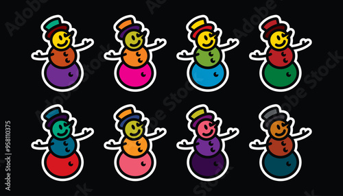 Naklejka premium Original vector icon set in vintage style. A kind snowman in a top hat.