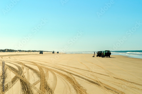 © Jonás Torres, Obraz premium Orilla de playa con marcas de ruedas de coche 03