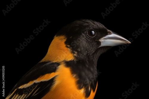 Naklejka premium Oriole closeup profile on dark background. Bird photography. Generative AI.