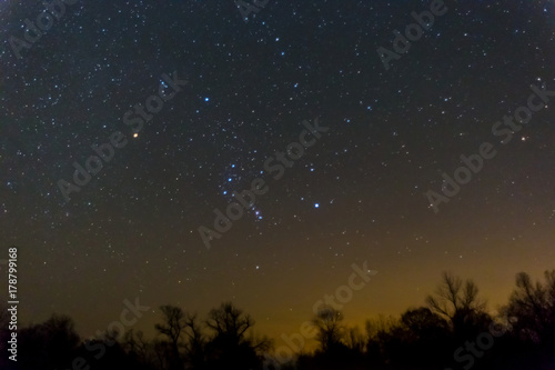 © Yuriy Kulik, Fototapeta premium Orion constellation above a night forest