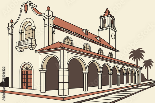 Obraz premium Orlando Amtrak Station in Florida, Spanish Revival style with arched arcade and red-tile roof