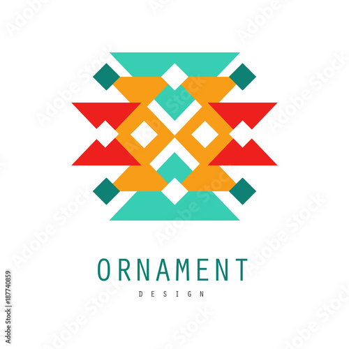 © topvectors, Obraz premium Ornament logo design, colorful template for label, badge, ornate pattern with geometric shapes vector Illustration