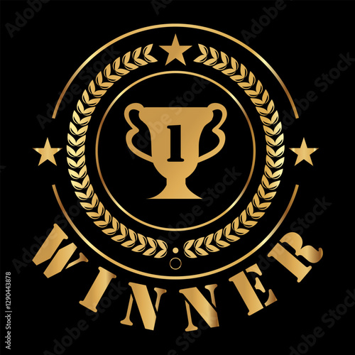 © Fauzi, Fototapeta premium Ornament of winning award championship with golden laurel wreath design vector in black background