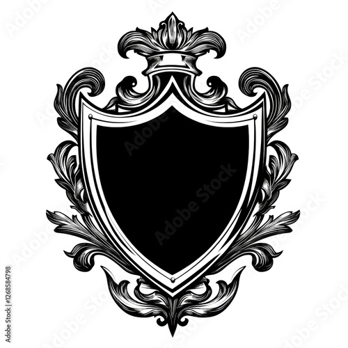 © Rattana, Fototapeta premium Ornamental black shield design, white isolated background
