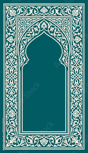 © Aryasakti, Obraz premium Ornamental Green Islamic Arch Pattern Border