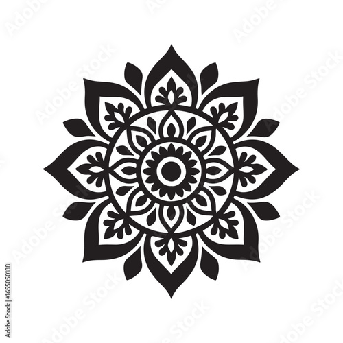 © Silhouette King, Naklejka premium Ornamental Mandala Design Vector - Black Floral Pattern Art