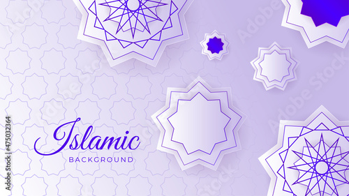 © Salman, Fototapeta premium Ornamental Mandala Purple white pattern Islamic design background. Islamic Background design for Ramadan Kareem