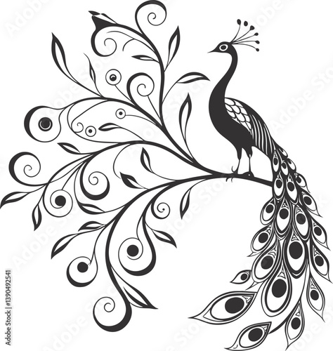 Obraz premium Ornamental Peacock Illustration Featuring Intricate Patterns